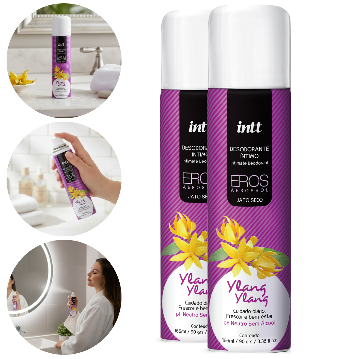 Kit 2 Desodorante Íntimo Eros Intt Ylang Ylang 166ml/90g – Feminino, Afrodisíaco, Sem Álcool