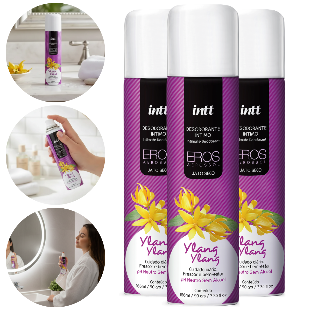 Kit 3 Desodorante Íntimo Eros Intt Ylang Ylang 166ml/90g – Feminino, Afrodisíaco, Sem Álcool