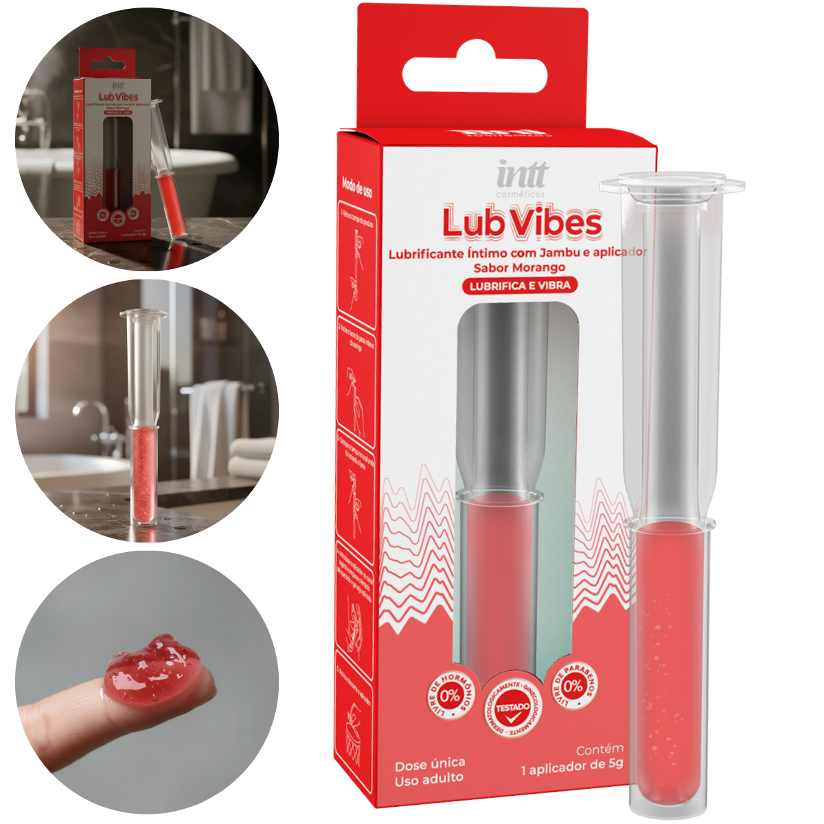 Lub Vibes Morango Intt Lubrificante Beijável com Efeito Vibrante 5g