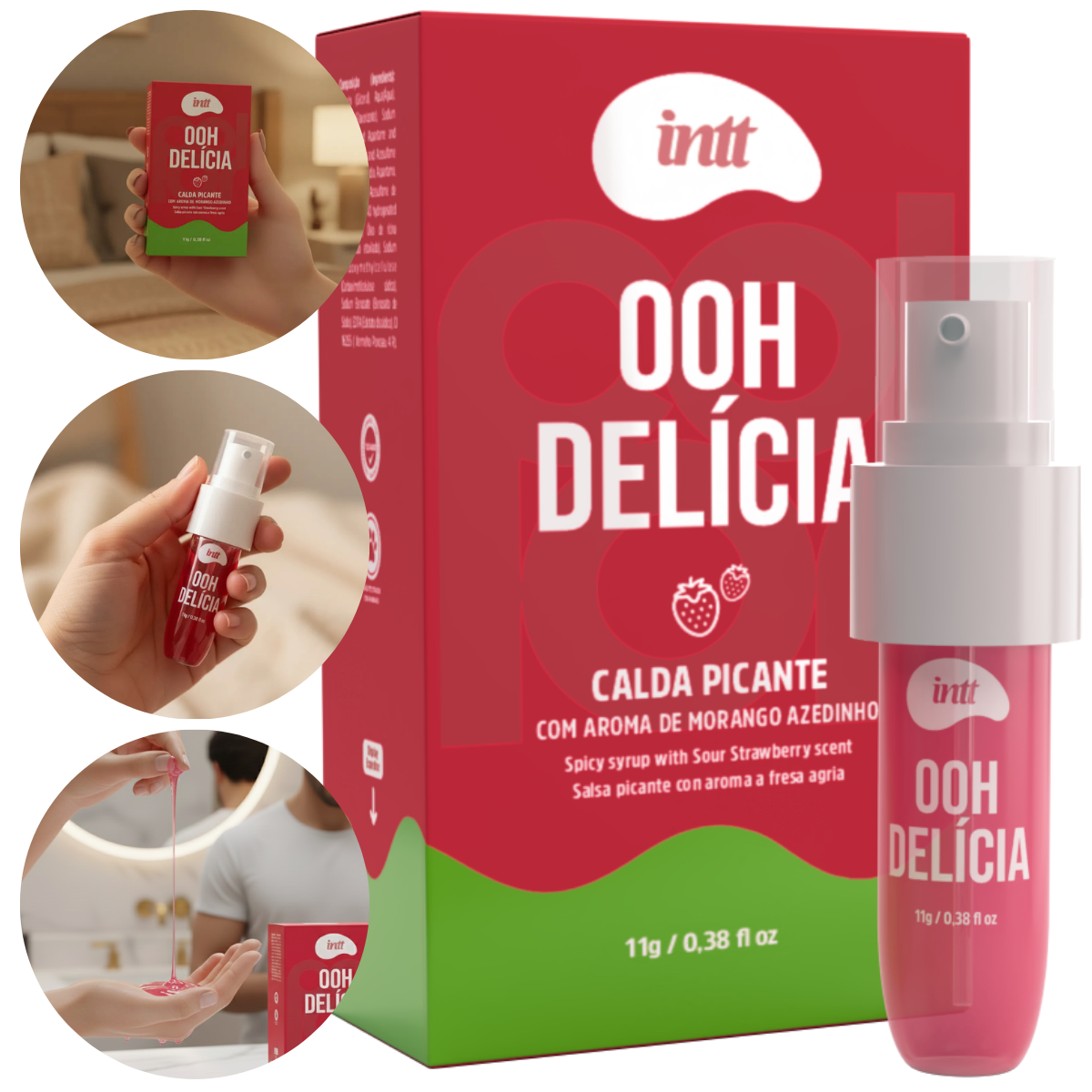 Desperte o sabor do prazer com a deliciosa Calda Picante Ooh Delícia Morango Azedinho da Intt!