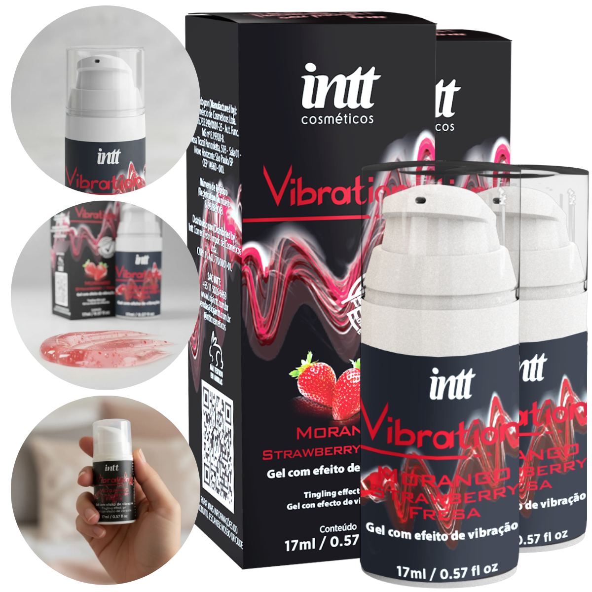 Kit 2 Gel Lubrificante Vibration Power Intt Vibra e Aquece Morango 17ml